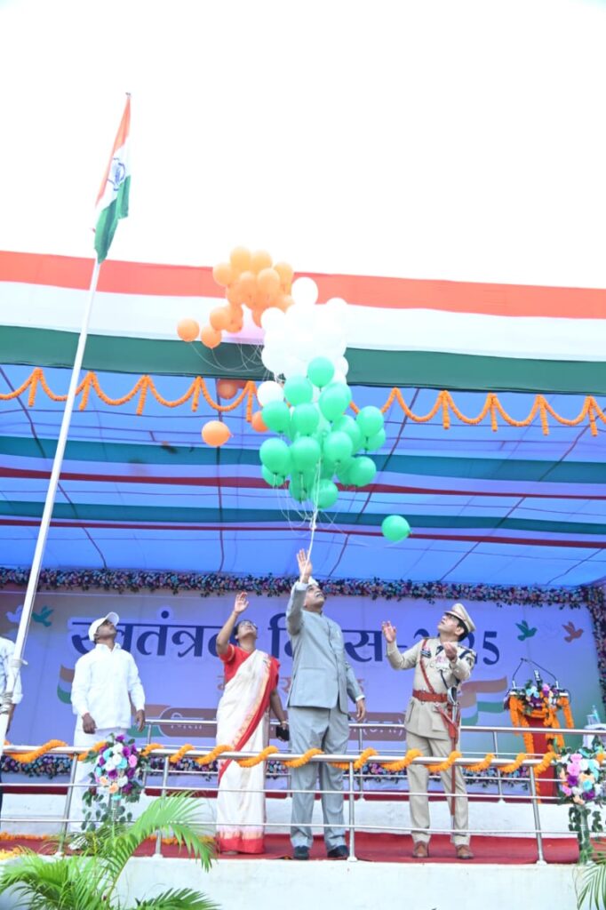 मोहला 15 अगस्त 2025। जिले में 79 वां स्वतंत्रता दिवस हर्ष व उल्लास के साथ मनाया गया। जिला मुख्यालय के स्टेडियम स्कूल ग्राउंड में आयोजित समारोह में विधायक रायपुर पश्चिम श्री राजेश मूणत ने ध्वजारोहण कर परेड की सलामी ली।