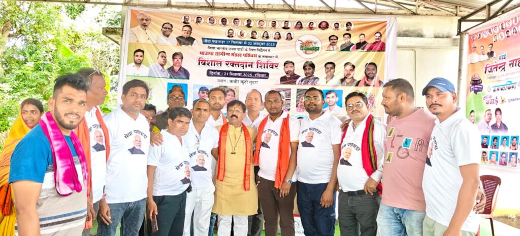राजनांदगांव।सेवा पखवाड़ा भाजपा ग्रामीण पश्चिम मंडल द्वारा देश के यशस्वी प्रधानमंत्री नरेंद्र मोदी जी के जन्म दिवस के अवसर में विशाल रक्तदान शिविर   कबीर कुटी आश्रम ग्राम सुंदरा में 21 सितंबर को आयोजन किया गया।