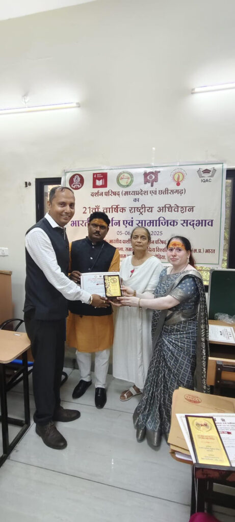 राजनांदगांव। खैरागढ़ /इंदिरा कला संगीत विश्वविद्यालय में पदस्थ योग शिक्षक डॉ अजय कुमार पाण्डेय ने उज्जैन के विक्रम विश्विद्यालय में भारतीय दर्शन तथा समाजिक सद्भाव विषय पर आयोजित राष्ट्रीय अधिवेशन में सकल राष्ट्रीय खुशी की अपूर्णता तथा सकल राष्ट्रीय कर्तव्य की परिकल्पना शीर्षक पर पत्र वाचन किया।