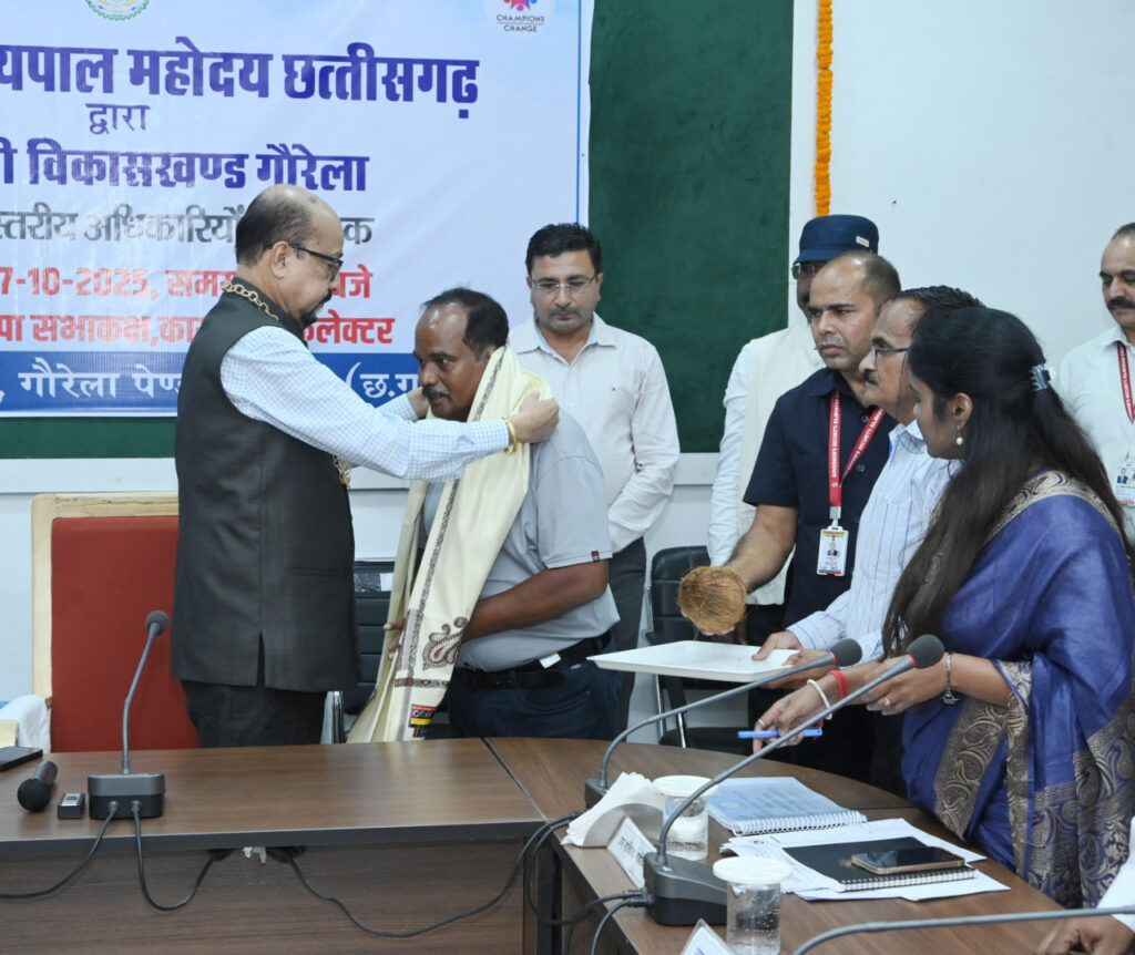 राज्यपाल श्री रमेन डेका ने गौरेला पेंड्रा मरवाही जिला प्रवास के दौरान आज  उत्कृष्ट कार्य के लिए डाइट के प्राचार्य श्री जे पी पुष्प को  कलेक्ट्रेट में शाल और श्रीफल से सम्मानित किया।
