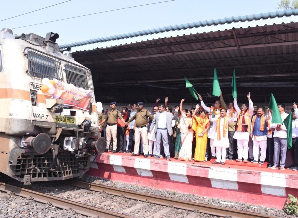 राजनांदगांव। सांसद श्री संतोष पाण्डेय एवं अध्यक्ष छत्तीसगढ़ पर्यटन मंडल श्री नीलू शर्मा ने आज रेल्वे स्टेशन राजनांदगांव से श्री रामलला दर्शन अयोध्या धाम योजना अंतर्गत दुर्ग एवं बस्तर संभाग के 13 जिलों के 665 तीर्थ यात्रियों की विशेष ट्रेन को हरी झंडी दिखाकर रवाना किया। राज्य शासन की महत्वपूर्ण श्री रामलला दर्शन अयोध्या धाम योजना अंतर्गत प्रभु श्रीराम के दर्शन के लिए राजनांदगांव रेल्वे स्टेशन से जाने वाले दर्शनार्थियों में भारी उमंग एवं उत्साह का क्षण रहा। जयश्री राम के जयकारे के साथ ढोल-मंजीरे की मंगल ध्वनि के साथ श्रद्धालुओं को अयोध्या के लिए विदा किया गया।